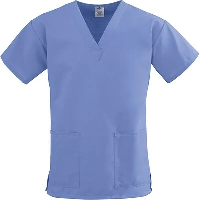 The Medline ComfortEase Ceil Blue Small V-Neck Scrub Top can be worn by female employees in labs, nursing home and other medical centers. Made of polyester and cotton blend, this pullover scrub top has long lasting color and finish, and withstands the rigors of industrial laundering. It comes with side vents to keep it breathable and comfortable to wear throughout the day. Being latex-free, it is extremely skin-friendly.
