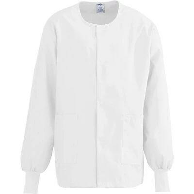 ComfortEase™ Unisex Two-pockets Warm-up Scrub Jackets, White, Small