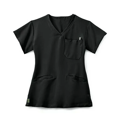 Black scrub top with welt pockets for female medical personnel