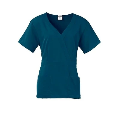 Perfectly blending style and functionality, the Medline Park AVE. Caribbean Blue 2XS Mock Wrap Scrub Top offers the utmost comfort when it is worn for long hours. It is designed with side slits to offer a breathable fit around the hip and waist. This women’s scrub top has 2 bottom pencil pockets to keep the necessary things you require.