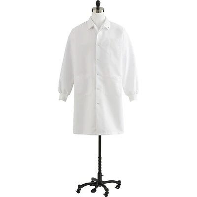 Medline Unisex Knee Length Knit Cuff Lab Coats, White, Large