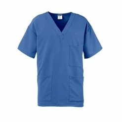 Medline Unisex Scrub Tops Madison AVE⢠Unisex Scrub Top With 3 Pockets, Ceil Blue, Large